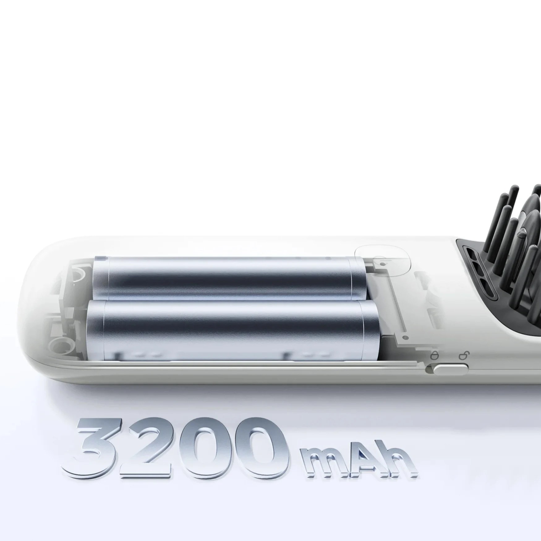 Its cordless design is powered by dual 3200mAh batteries, offering 3–4 styling sessions per full charge. Compact and lightweight (206.5 x 44 x 43.5 mm, 269 g), the brush is ideal for travel, quick touch-ups, or use at home without the hassle of cords.